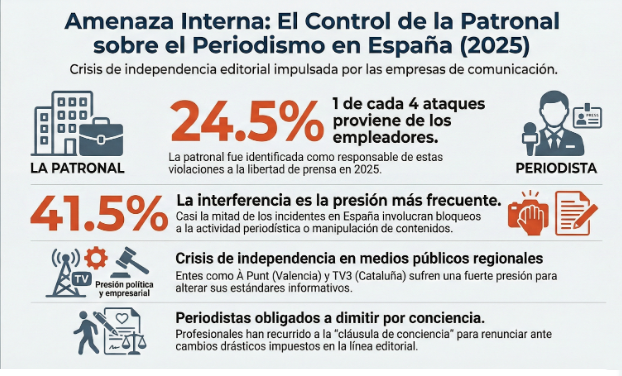 🏢 Patronal, precariedad y control editorial